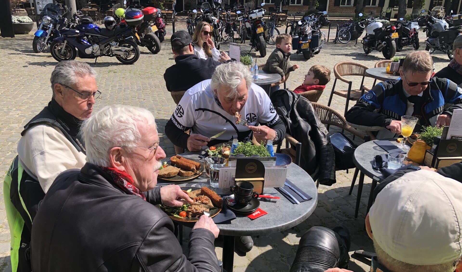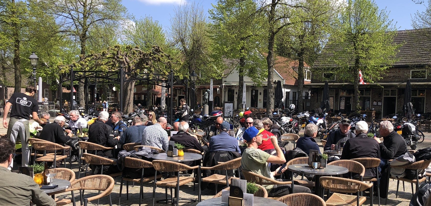 Na de pauze vervolgden we onze route over schitterende, bochtige wegen rondom Eindhoven. In Eersel lunchten we met 22 motorrijders bij Cosy Foodbar, waar we even konden uitrusten en bijpraten.